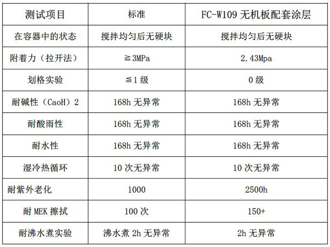 實驗結論:FC-W109無機板配套涂層通過耐水煮測試