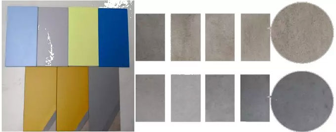 一體板,行業除了保證戶外耐候的功能外, 還需要以色彩的裝飾性滿足市場需求點, 就目前來說, 水性氟碳涂料除了常規的實體色、金屬色、珠光色, 我們還針對目前比較流行的清水混凝土色、防銹色做出了發開, 來通過行業顏色選擇的多樣性。
